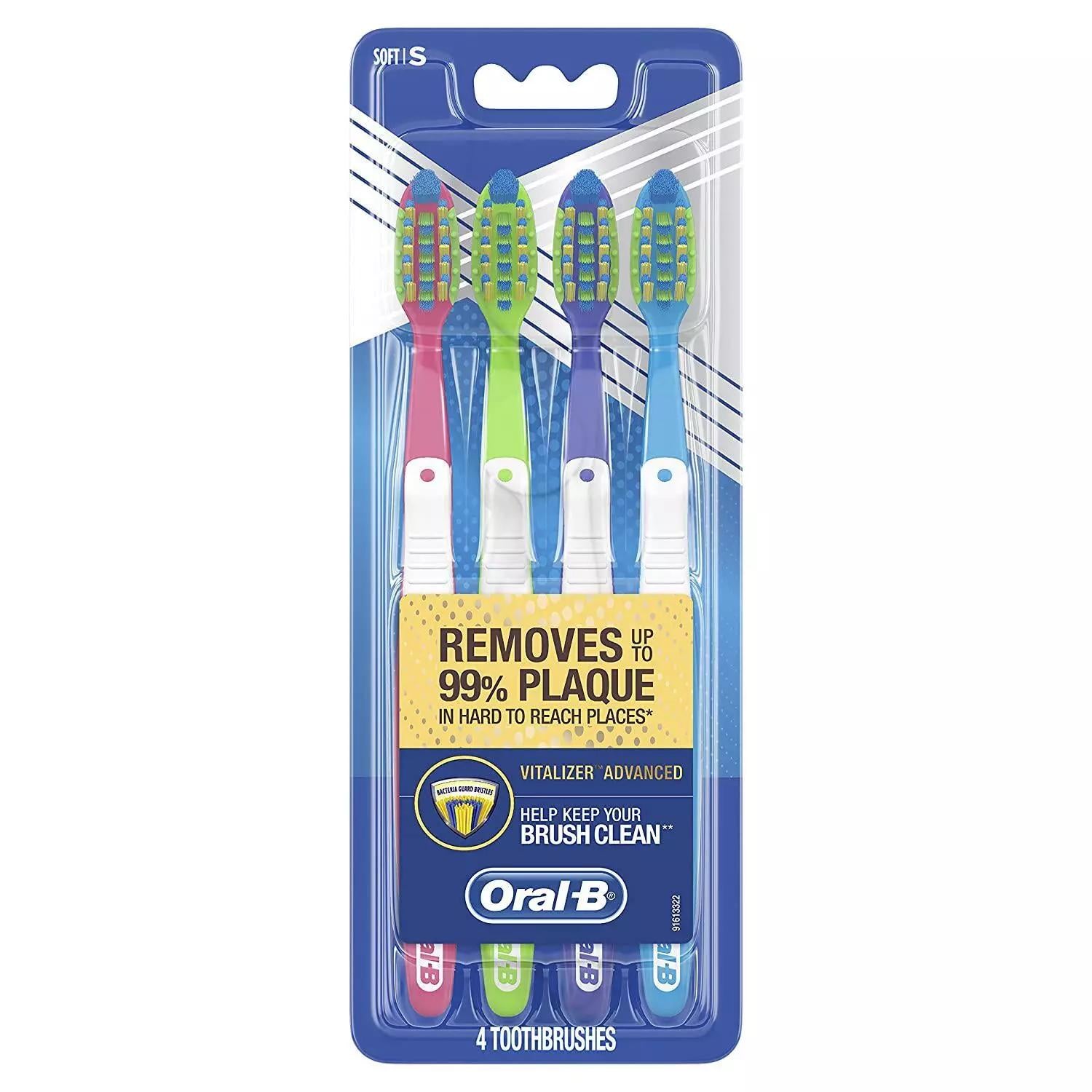 - Contains 4 Vitaizer Advanced Soft bristle toothbrushes